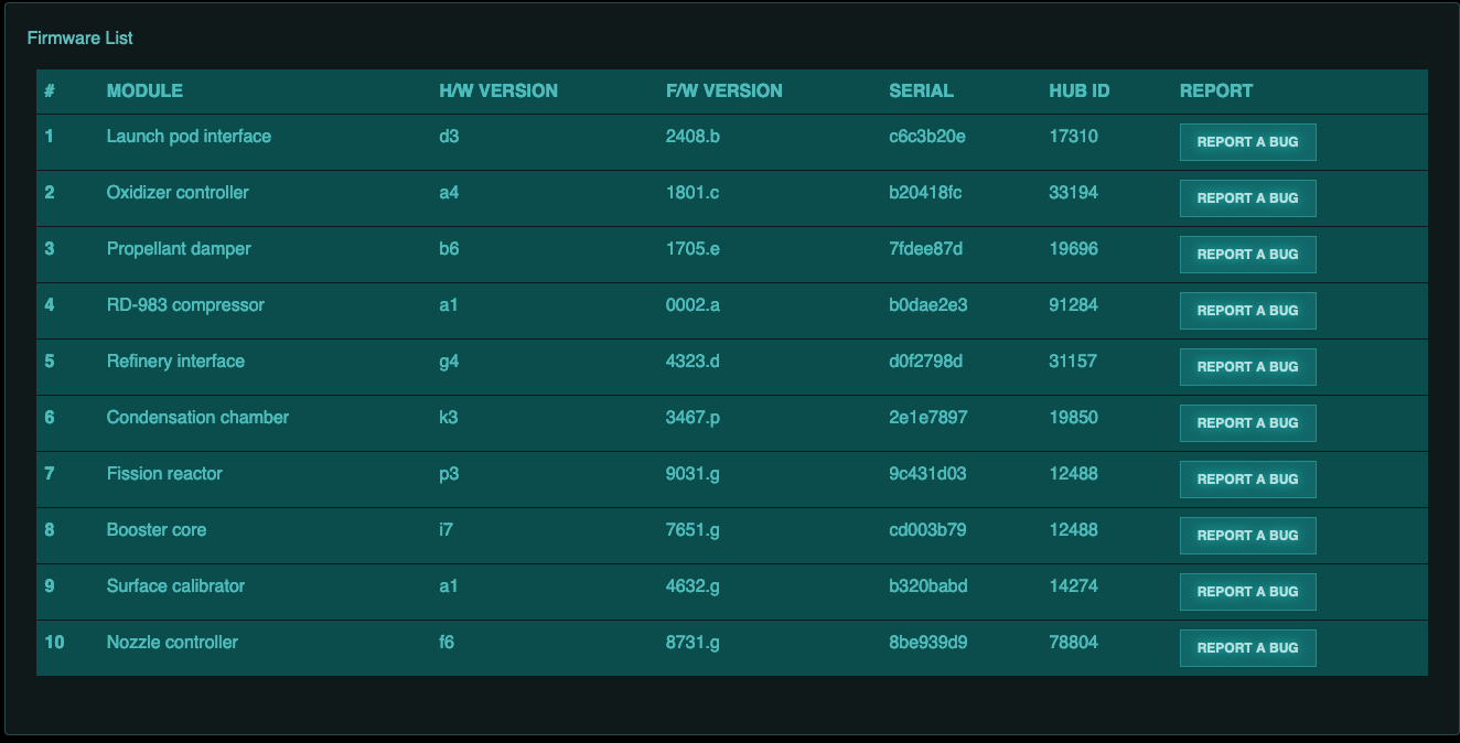 After creating a new account and logging in, we are presented with a list of “firmwares” and the possibility to “Report A Bug” against each one: